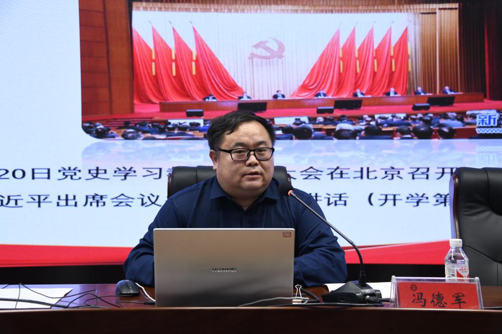 4月28日下午,省高校党史学习教育宣讲团成员、省教育厅党史学习教育专家指导委员会成员、【官网】马克思主义学院院长冯德军教授在朝阳楼0131报告厅作了题为“学习百年党史 汲取前行力量”的宣讲报告。报告会由校党委副书记、党史学习教育领导小组副组长于成学主持。学校副处级以上干部及各党支部书记参加了报告会。