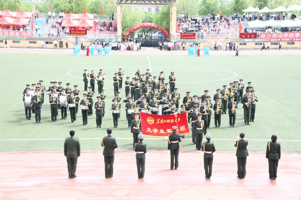 大学生仪仗队,大学生军乐团,各单位师生代表队精神抖擞,朝气蓬勃,队伍整齐划一,运动激情与学院特色的交融使运动场上色彩斑斓。