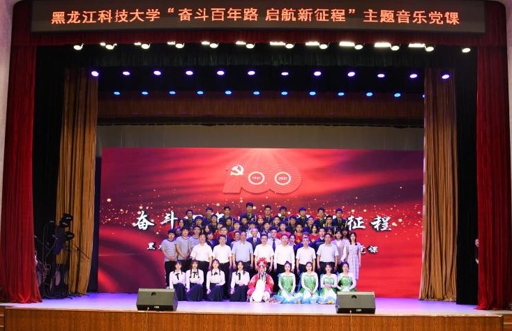 在音符跳动中追忆往昔,在文化熏陶中培育新人。为庆祝中国共产党成立100周年,持续推进党史学习教育,6月11日,由学校党委宣传统战部、党委组织部、校团委、马克思主义学院主办的庆祝建党100周年“奋斗百年路·启航新征程”主题音乐党课在江畔会堂开讲。黑龙江省高校党史学习教育第三巡回指导组成员王月华,学校党政领导班子成员,副处级以上干部,各党支部书记,全体师生党员通过线下、线上方式参加了音乐党课。
