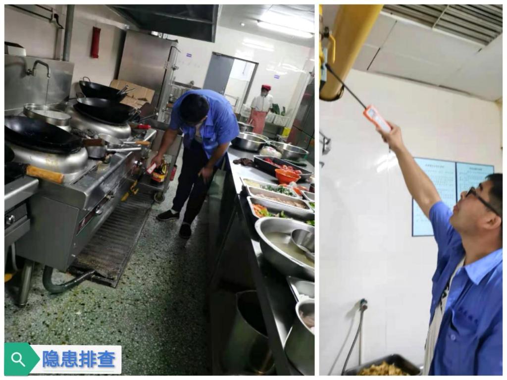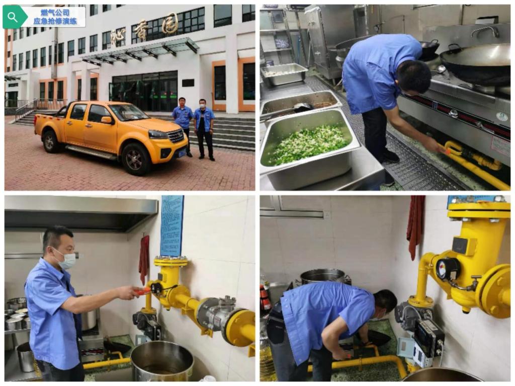 6月19日、20日学校协调天辰燃气公司入校进行燃气安全专项检查。对燃气管道、工业报警器(气体泄漏监测探头)、切断阀、室外调压柜等燃气、报警设备进行拉网式排查,重点对炉具和管道连接处是否有泄露情况、管道腐蚀情况进行了逐一测量检测。