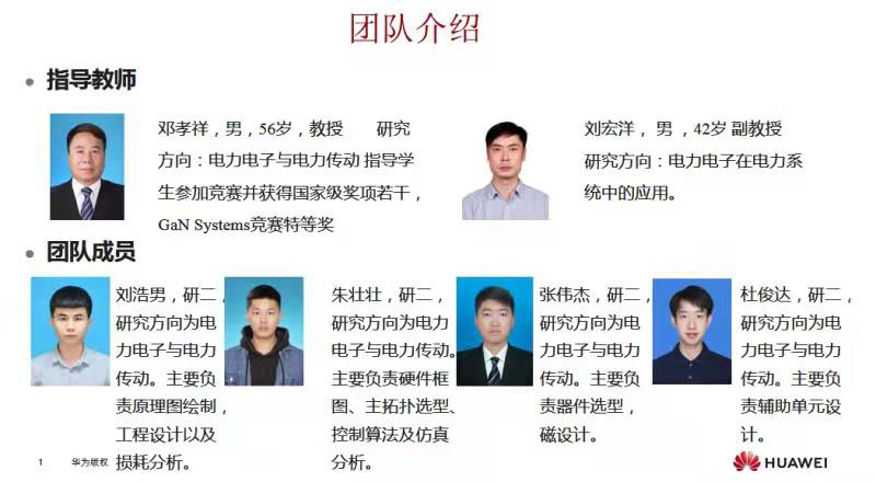 2021年6月23日,“华为中国大学生电力电子创新大赛”组委会公布晋级决赛名单,【官网】由电气与控制工程学院电力电子研究所所长邓孝祥教授和刘宏洋副教授指导的研究生团队“松花江上最靓的仔”(2019级电气工程研究生:刘浩男、朱壮壮、张伟杰、杜俊达)位列其中,这是继去年12月【官网】在“GaN Systems杯第六届高校电力电子应用设计大赛”中荣获唯一最高奖项“特等奖”后再次捷报传来。