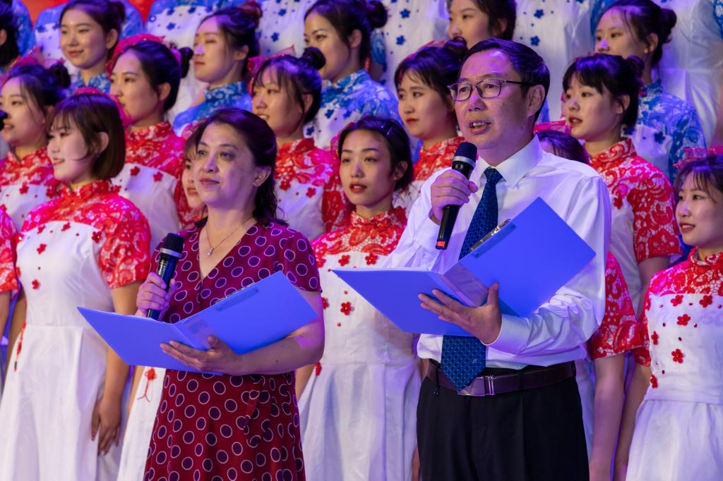 6月25日下午,从准备到比赛结束,历时近2个月的“奋斗百年路·启航新征程”庆祝建党100周年师生合唱比赛在学校江畔会堂落下帷幕。校党委书记周宏力,校长郝传波,校党委副书记赵科学,校党委副书记于成学,纪委书记李国庆,校党委常委、副校长刘志强,副校长张国华,校党委常委、组织部部长李伟,校党委委员,校纪委委员,离退休老干部代表,师生代表现场观看了比赛决赛,广大师生通过线上直播观看比赛。比赛由省内部分高校音乐教育专家担任比赛评委。学校党委组织部林松、学生党员芦欣然担任比赛主持人。