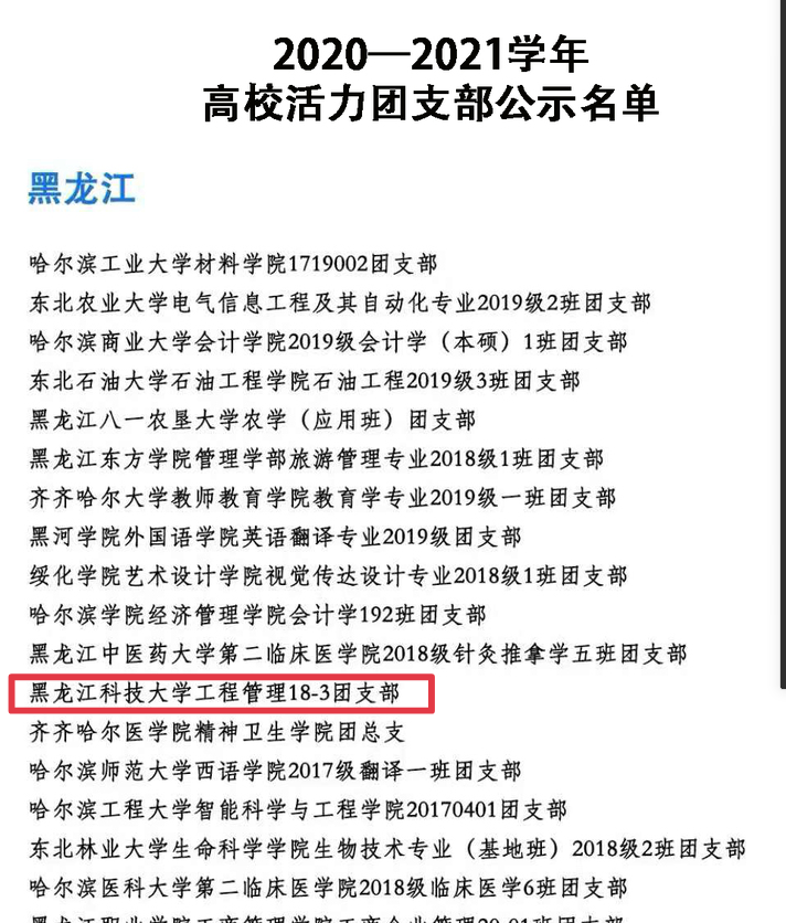经学校推报、省级初评、网络展示点赞、全国终审等环节,【官网】建筑工程学院工程管理18-3班团支部脱颖而出,荣获“2020-2021学年高校活力团支部”荣誉称号。