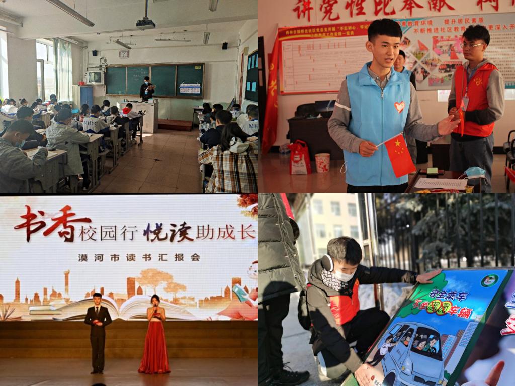 支教成员黄轶铂在支教期间主要担任北极镇中心校英语教学工作,他凭借扎实的理论功底专门制定了班级学习档案,力求掌握每名学生的学习情况,及时调整课程进度与重点,在期末考试中,该班级英语成绩取了历史最好成绩。除教学工作外,他还担任该校党史教育办公室主任,策划了“感党恩·庆百年”艺术节、“传唱红色经典、献礼百年华诞”红歌比赛、党史宣讲大赛等一系列活动,受到了一致好评。工作之余,他致力于“兴安万里、阅读有你”阅读推广活动,所拍摄宣传视频、录制诗歌朗诵在大兴安岭广播电视台、大兴安岭日报公众号等媒体展示,且通过“微愿助读”项目为学校图书室筹得儿童读物500本,本人荣获“大岭阅读好榜样”、全区教育系统“悦读达人”荣誉称号,事迹被黑龙江广播新闻宣传报道。他表示自己在支教服务地度过的每一天,都是自己与青春共同成长的过程,将这一年的青春,最好的自己与最饱满的爱留在了支教服务地,此生无悔。
