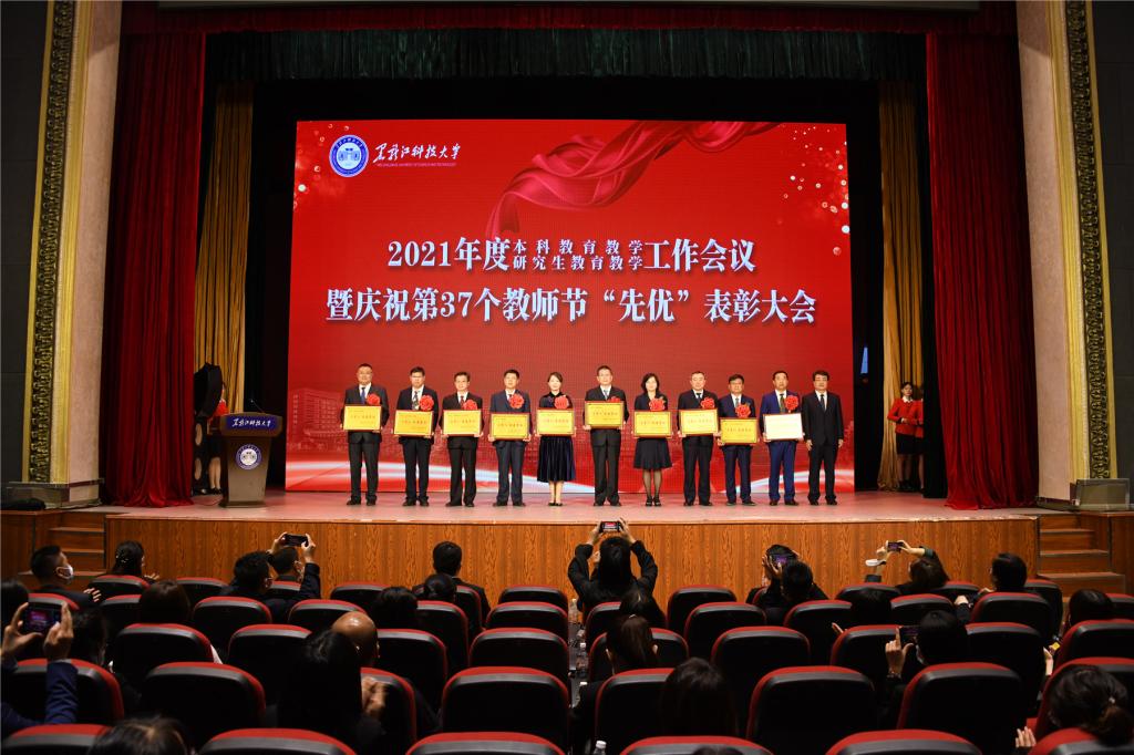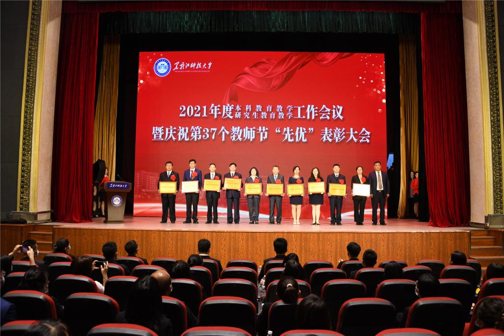 与会其他校领导分别向本科教育教学工作先进集体和先进个人、研究生教育教学工作先进集体和先进个人、“三育人”先进集体和先进个人等“先优”代表颁奖。