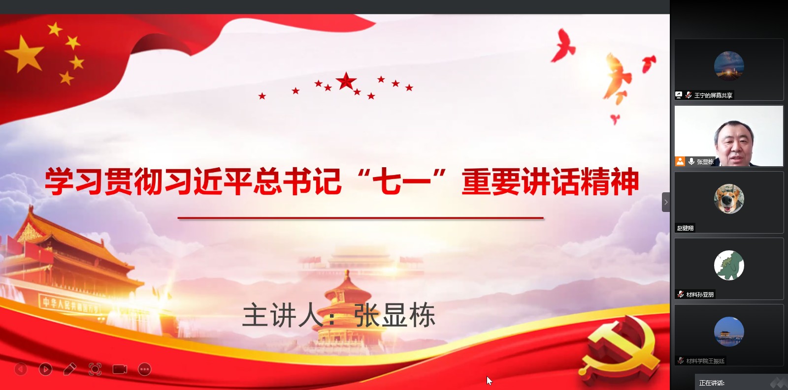 材料科学与工程学院学院党委于9月15日召开了学习贯彻习近平总书记“七一”重要讲话精神专题宣讲会。学院党政领导,全体老师参加了会议。学校宣讲团成员、学院党委书记张显栋做了专题宣讲。