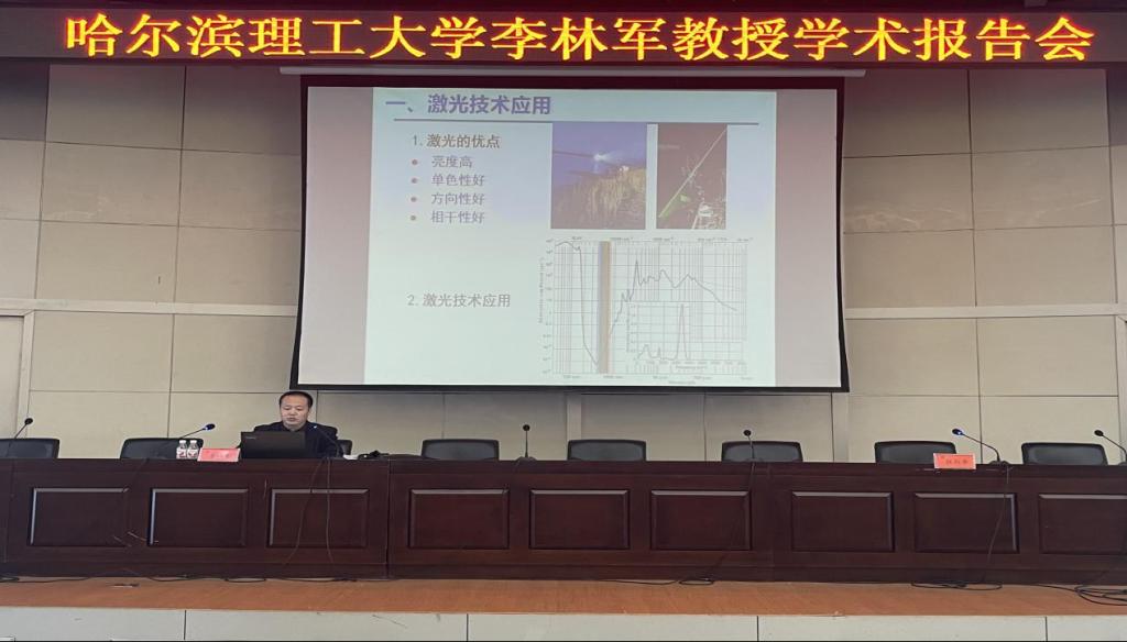 10月27日下午, 哈尔滨理工大学博士生导师、黑龙江省杰出青年科学基金获得者、黑龙江省级领军人才梯队学科带头人、光学工程国防特色学科带头人李林军教授应邀来【官网】做学术报告,学校副校长、党委常委陈凯云参加报告会,报告会由理学院副院长张向华教授主持,理学院以及其他院系的部分师生参加报告会。