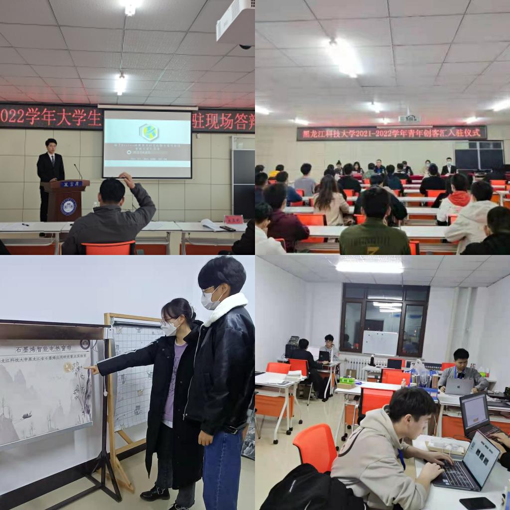 培养自主性创业团队,打造示范性创业基地。学校组织开展了2021-2022学年入驻青年创客汇大学生创业团队答辩会,经大学生创业团队自愿申报、各学院团委审查推荐、学院党委审批、现场答辩、公示等环节,最终确定黑龙江省无畏征途科技有限公司、石墨烯科技研发创业团队、向阳科技有限公司、科创光电创业团队等10支优秀创业团队脱颖而出,成功入驻青年创客汇。同时,为规范入驻大学生创业团队日常管理,校团委组织召开了2021-2022学年青年创客汇入驻仪式,强调了入驻期间的纪律要求,对各创业团队在科技创造、项目研究、平台利用、营造浓郁学风等方面提出具体要求,并结合实际需求为各创业团队配备办公桌椅、文件柜、宣传展板等办公物品,修缮了青年创客汇学习交流区,增设了青年创客汇直播室,为入驻大学生创业团队营造了良好的创新创业氛围。