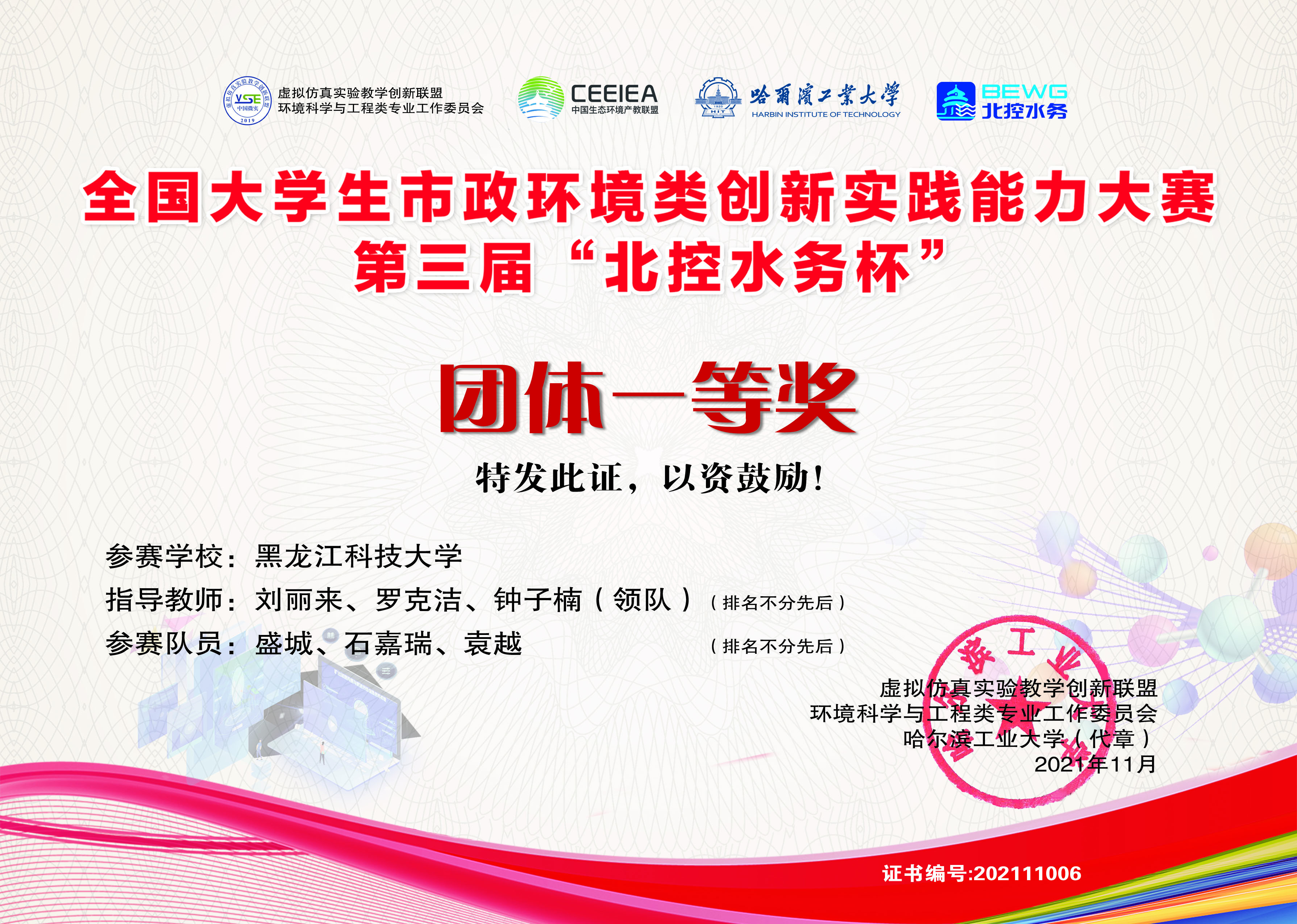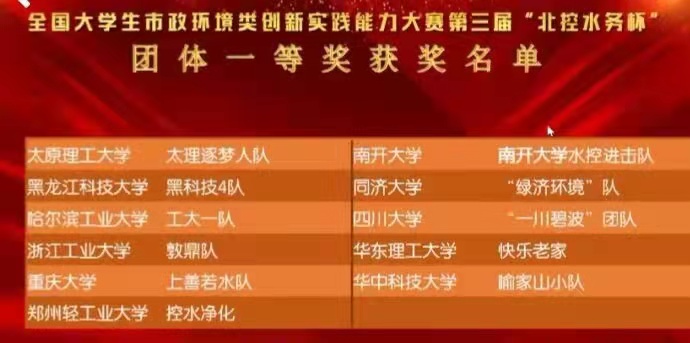 近日,由中国环境科学与工程类专业工作委员会、虚拟仿真实验创新教学联盟、生态环境产教联盟主办,北控水务集团、哈尔滨工业大学等承办、同济大学、南开大学、兰州大学协办的第三届全国大学生市政环境类创新实践能力“北控水务杯”大赛在全国拉下帷幕。【官网】环境工程专业代表队荣获全国团体决赛一等奖,9名学生荣获个人单项一等奖。