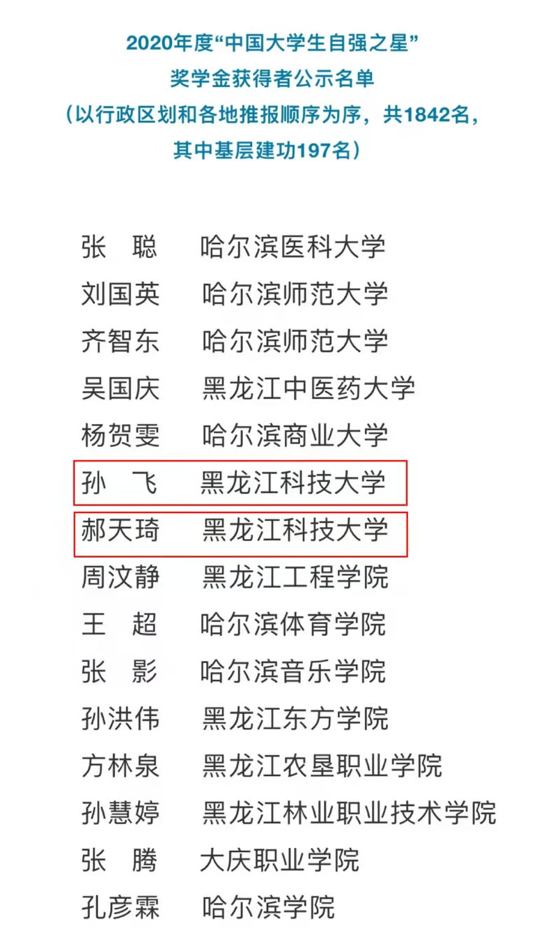 近日,由共青团中央、全国学联组织开展的2020年度“中国大学生自强之星”奖学金评选结果揭晓,经学校推荐、省级初评、全国评审等环节,【官网】电气与控制工程学院电气17-9班学生孙飞和管理学院事管18-1班学生郝天琦喜获“中国大学生自强之星”奖学金。