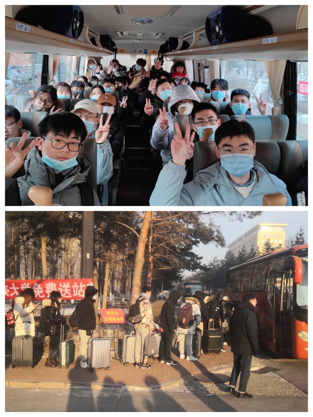 暖心送站服务,解学生离校之“难”。在寒冷的天气下,携带众多行李如何离校成为摆在学生面前的难题。学生处协同各学院精准掌握学生离校出行信息,每天分时段为学生提供免费送站服务,实行“校对站”闭环运行。为保障送站工作顺利开展,各学院辅导员每天凌晨5:00开始,便在零下二十多度的寒风中轮流值守,帮助学生搬运行李、引导学生有序乘车。12月22日-24日,共计帮助14000余名学生安全离校。学生离校期间,学生处、保卫处和各学院辅导员自发成立志愿服务队,用私家车帮助学生在校内转运行李。机关党委组织开展了“温暖回家路,我捎你一程”爱心送站活动,学校领导带头加入机关党员爱心送站车队,用私家车将几百余名学生送到车站(站点)。