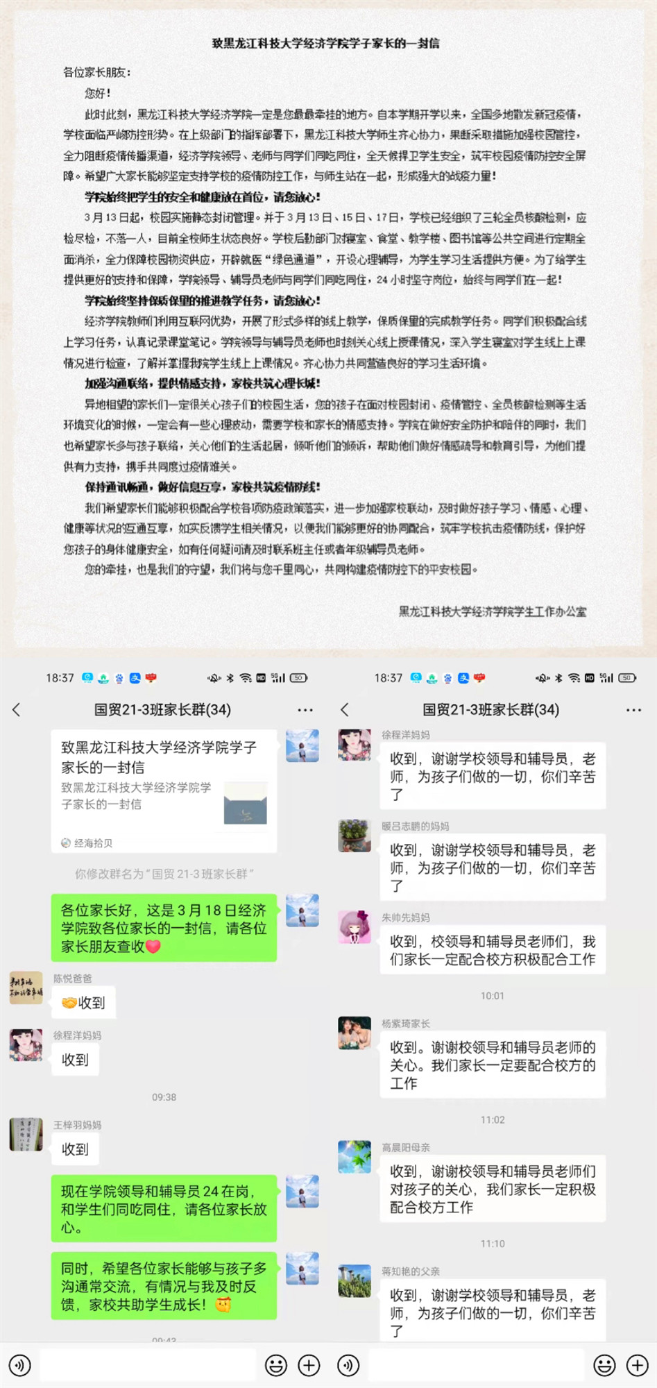 万众一心,凝聚力量,家校共筑教育同心圆。经济学院于3月18日发布《致OD在线经济学院学子家长的一封信》,向各位家长阐述校园防控措施,展示学校学院为广大学生提供的完备后勤保障以及学生学习生活的良好状态。通过一封信,让家长更放心远在他乡的孩子;通过一封信,指导家长与孩子更好的沟通交流;通过一封信,拉近家校距离,建立沟通平台,家校共筑教育同心圆。