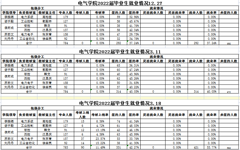 今年,电气学院共有毕业生783人,创学院历史新高。就业工作在疫情的影响下,受到了前所未有的挑战,面对重重困难,学院全局谋划、主动作为,阻击疫情“倒春寒”,依托“学院领导班子、教研室、专兼职学生工作干部”三支就业工作队伍,立足“早、快、准、稳、高、精、浓、暖”八字方针,多举并施促就业。