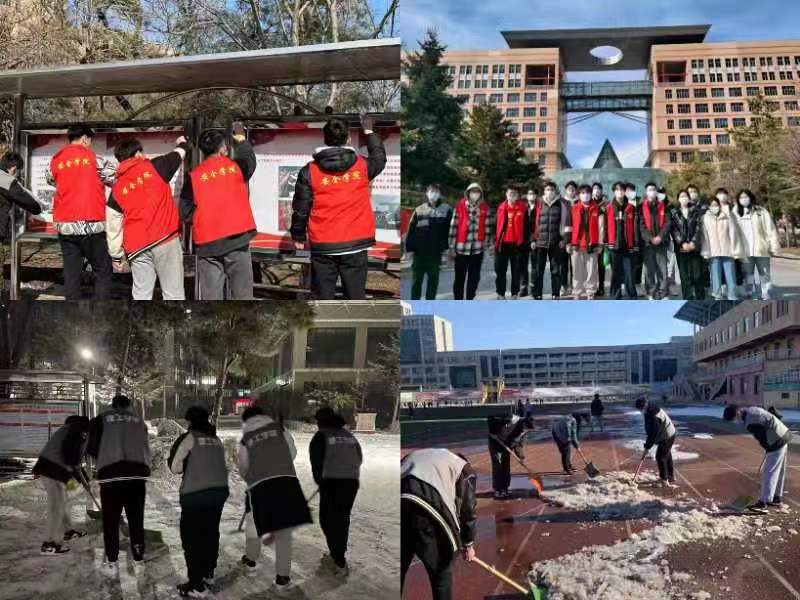 在疫情期间,在学校的各个角落,都有一群穿着粉色、蓝色的小马甲、穿着防护服的志愿者们,他们主动响应号召,冲锋在前,服务同学,积极投身于校园抗疫一线,热心为同学们服务,消毒、测温、分发口罩。安全学院团委、环化学院团委、人文学院团委开展了“清理展板、美化校园”服务活动,各团支部利用课余时间,携带清理工具对校园内的宣传栏进行了保洁志愿服务。电气学院团委、建工学院团委、材料学院团委组织团支部对科技广场、运动场等活动场所的积雪进行了清理,美化了环境,方便了广大同学的业余文化生活。