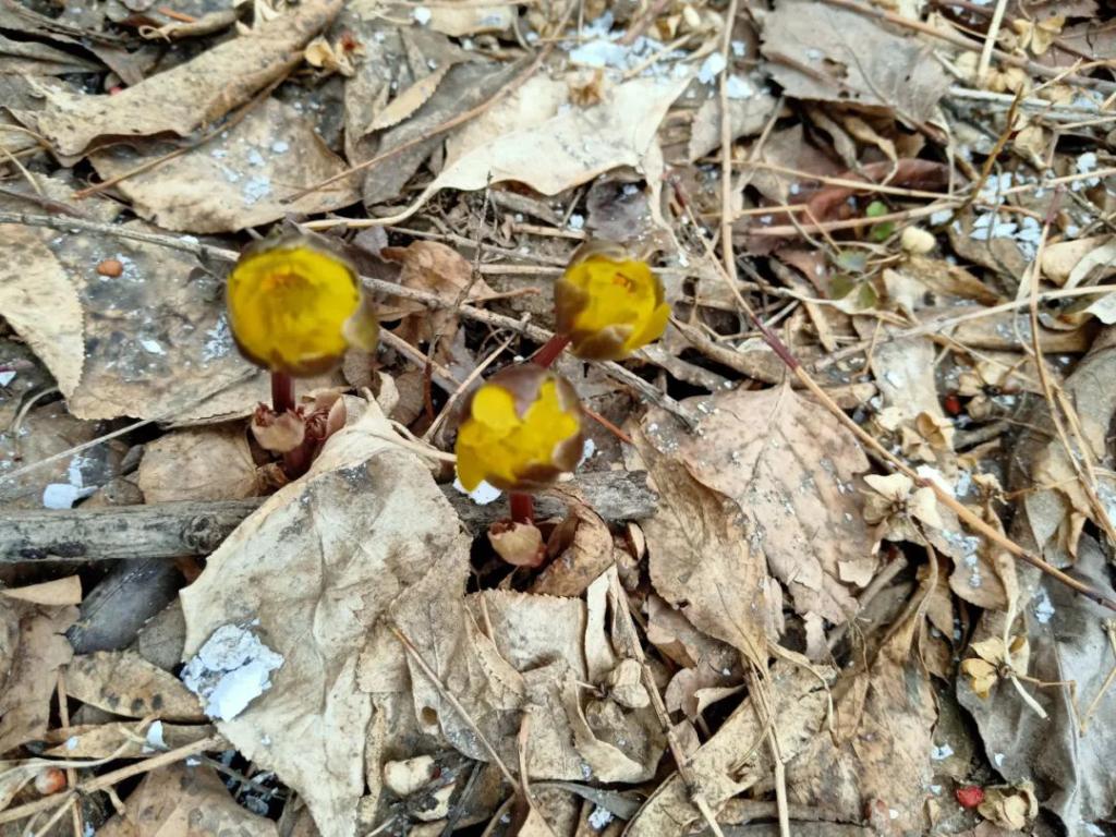 那里有一片冰凌花,嗯,就是你想到的那种可以与冰雪共存的黄色的花朵。前段时间我们过去看时还只见冰雪不见嫩芽,我们都担心去年的大雪会不会扼杀它的生命。今天,我迫不及待地想去看看。