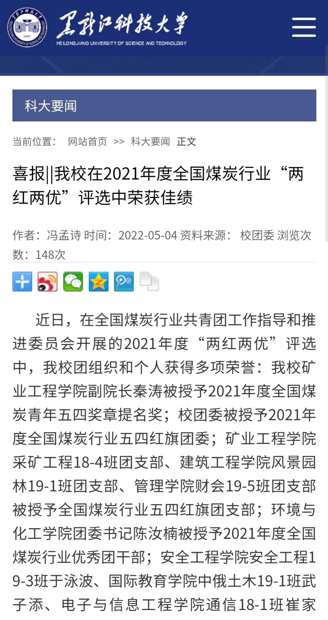 5月4日,学校召开了纪念五四运动103周年青年座谈会,党委书记周宏力出席座谈会,向全校广大青年师生致以节日祝贺和诚挚问候,并作了语重心长、情真意切的讲话,18名师生代表围绕学习习近平总书记在中国人民大学调研时的讲话精神、习近平总书记回信精神、喜迎二十大、庆祝建团100周年、继承和发扬五四精神等方面,畅谈青春理想,共话青春使命;校团委坚持发挥典型示范作用,在五四前夕,评选管理学院团委等5个团委为“五四红旗团委”、风景园林19-1班团支部等39个团支部为“五四红旗团支部”、统计18-1班唐庚辰等25名同学为“OD在线之星”、龙机电19-1班陆靖等119名同学为“优秀团干部”、矿加19-1班赵玉洁等228名同学为“优秀团员”,共同激励广大团组织和团员、团干部再接再厉,再创佳绩;在今年的全省、全国煤行业“两红两优”评选工作中,【官网】多个先进集体和先进个人获奖,数量创历史新高。