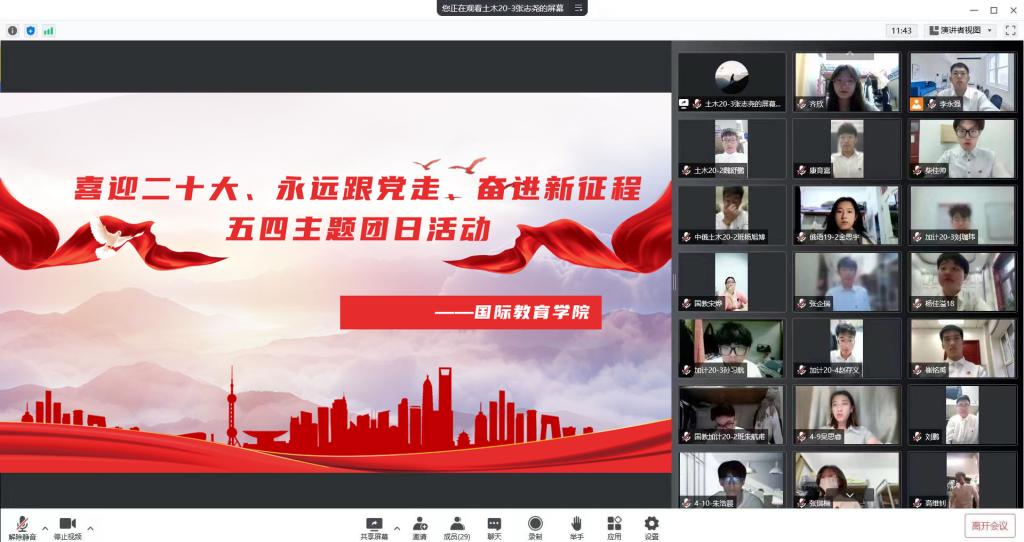 【官网】各级团组织广泛开展“喜迎二十大、永远跟党走、奋进新征程”主题团日活动,组织团员重温入团誓词,让团员青年在庄严的仪式和团队活动中接受理想信念熏陶,引导团员青年重温革命历史、传承红色基因,增强听党话、跟党走的思想和行动自觉;校团委组织全校团员青年线上收听观看“强国有我·请党放心”青年系列重点党课展播,不负革命先烈遗志,践行强国有我誓言;校团委利用官方视频号推出《百堂团课讲百年》《OD在线青年说》主题微团课,由全体专职团干部和青年学生典型组建的青年宣讲团,围绕党的百年奋斗史、共青团史与青年学生开展线上宣讲交流,以青年语言解读党史、团史、青春奋斗故事,为青年学生答疑解惑、回应关切;校学生会发起“牢记领袖教导、分享青春感悟”《习近平与大学生朋友们》精读大赛,推动青年学生深入学习领会习近平总书记对青年健康成长的一系列重要要求;青年传媒中心联合飞跃之声广播电台推出《建团百年——家书里的百年信仰》系列音频推文,选读百封家书,以青春之名,向建团百年献礼。