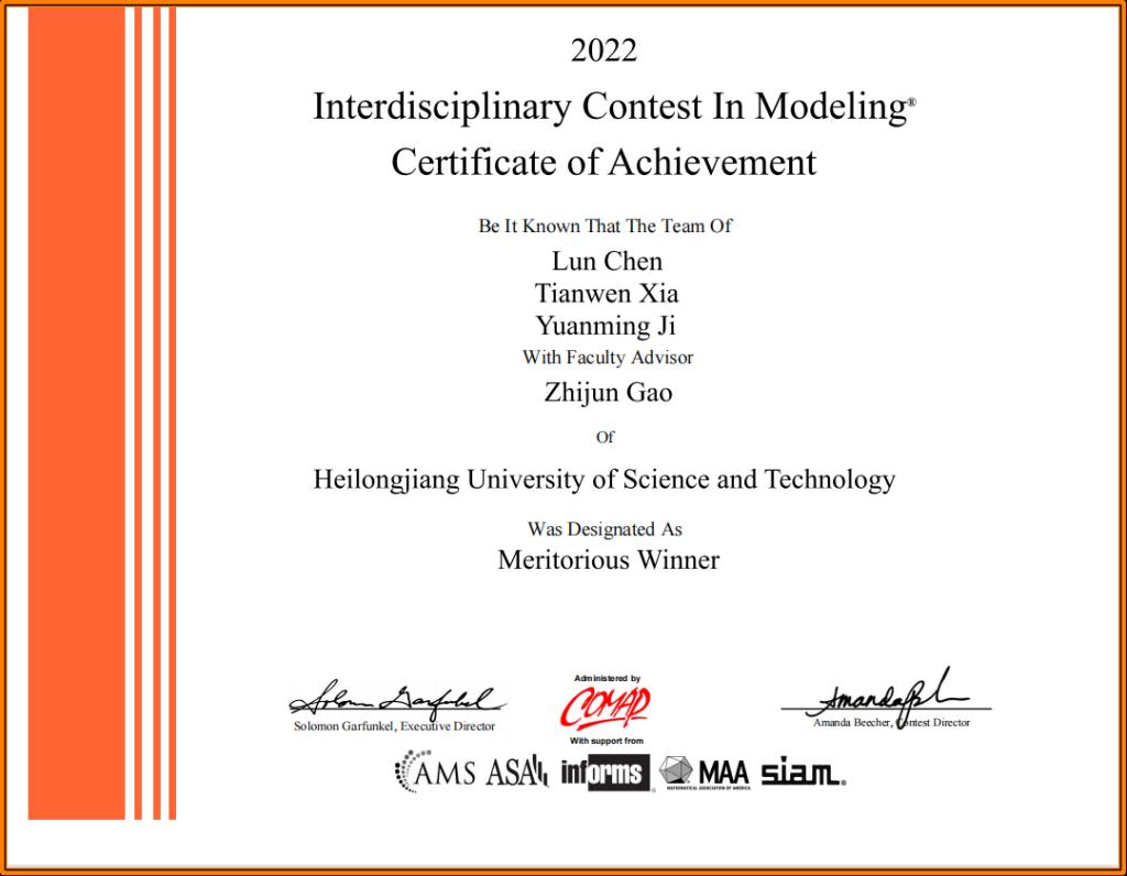 近日,2022美国大学生数学建模竞赛评选结果揭晓,【官网】计算机学院3支队伍喜获国际一等奖(Meritorious)1项和国际二等奖(HonourableMetion)2项的好成绩。