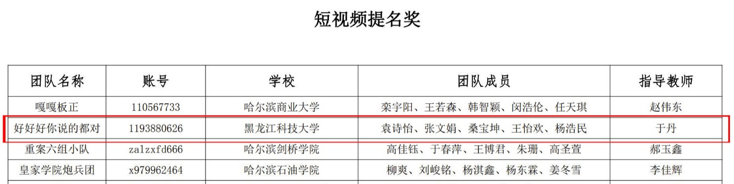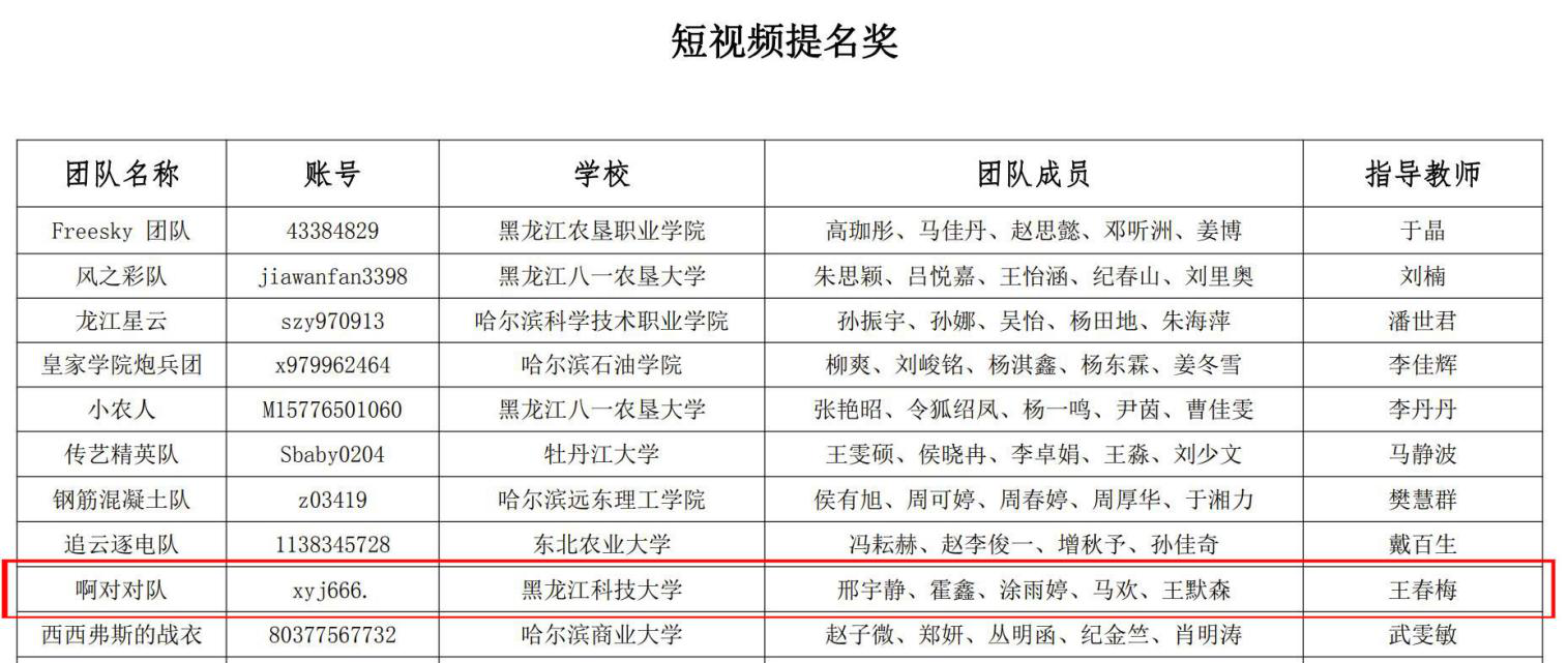 近日,由黑龙江省教育厅、共青团黑龙江省委员会主办的“直播美好时代、代言青春龙江”首届(2021)黑龙江省大学生电商创新创业大赛结果揭晓,【官网】荣获优胜奖2项,短视频提名奖2项、复赛入围奖6项的好成绩。