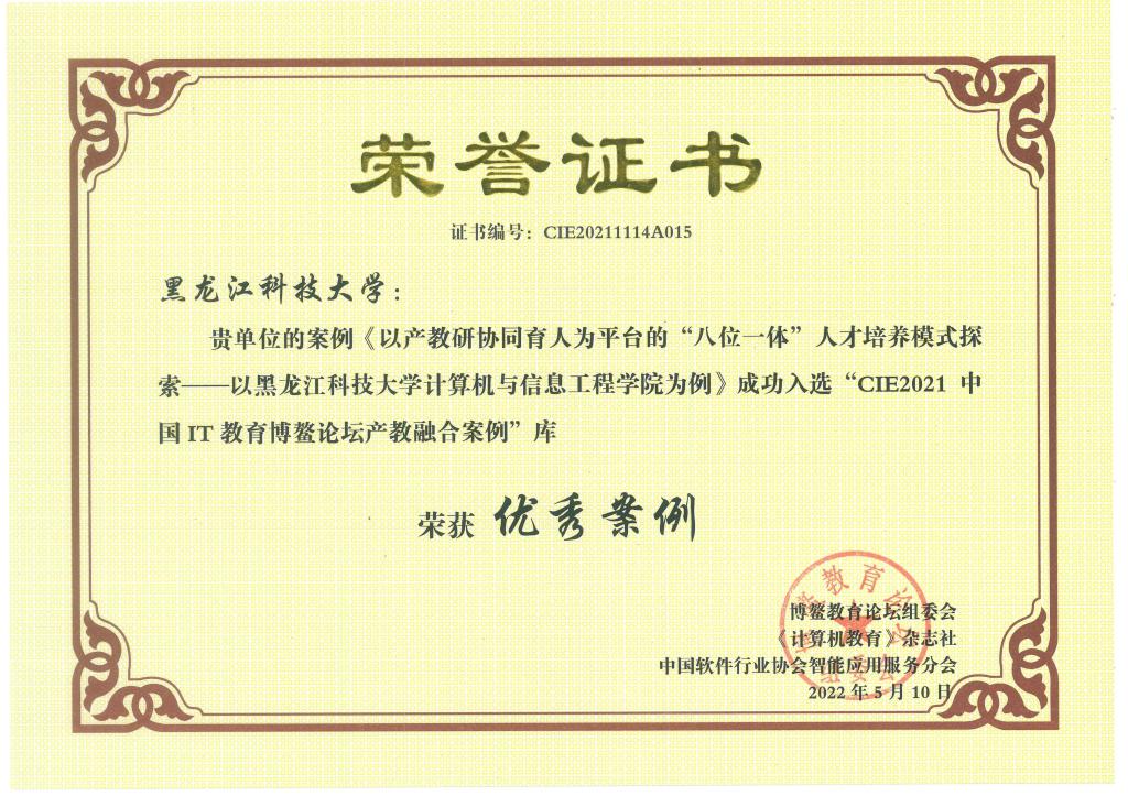 近日,在刚刚结束的全国“CIE2021中国IT教育博鳌论坛产教融合案例”评选中,【官网】计算机与信息工程学院申报的《以产教研协同育人为平台的“八位一体”人才培养模式探索》获得全国优秀案例,并与复旦大学、西安电子科技大学等19所高校和企业共同入选全国案例库,成为黑龙江省唯一一所入选全国案例库的高校。同时,【官网】教师武狄和李强共同撰写的论文《后疫情时代,高校开展稳就业保质量工作的实践与探索》获得优秀论文三等奖。