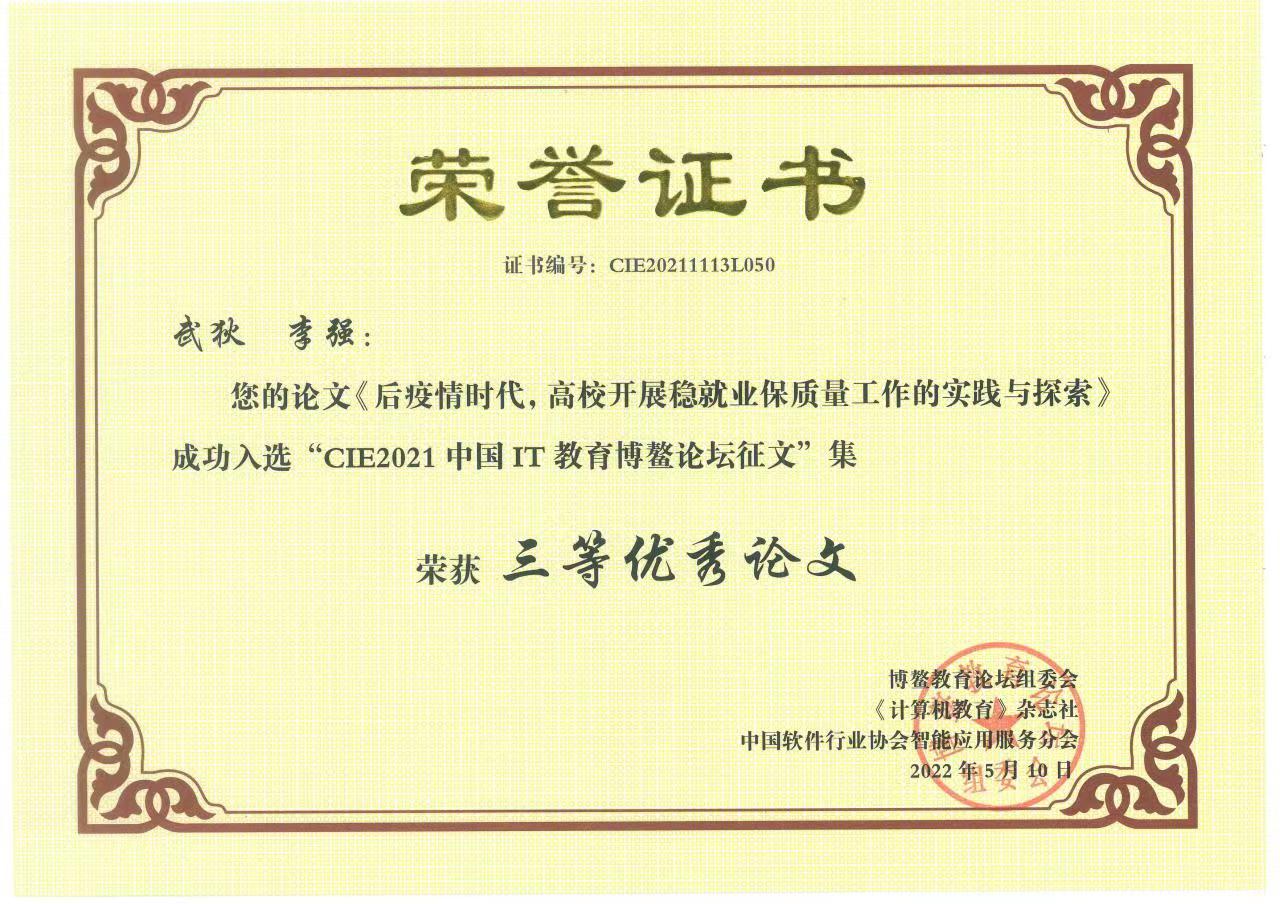 【官网】计算机与信息工程学院一直高度重视大学生就业创业工作的积累和总结,曾在2020年CIE中国IT教育论坛上获批中国软件行业校园招聘与实习公共服务平台百所试点院校和中国软件行业双万计划创始单位。这次获得全国优秀案例,是【官网】计算机学院多年深耕学生就业工作,研究新时期大学生就业工作特点取得的标志性成果。