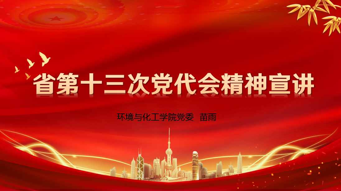 为深入学习贯彻落实省第十三次党代会报告精神,6月15日下午环化学院党委书记苗雨通过腾讯视频会议作了省第十三次党代会报告精神专题宣讲,学院全体教职工参加了会议。
