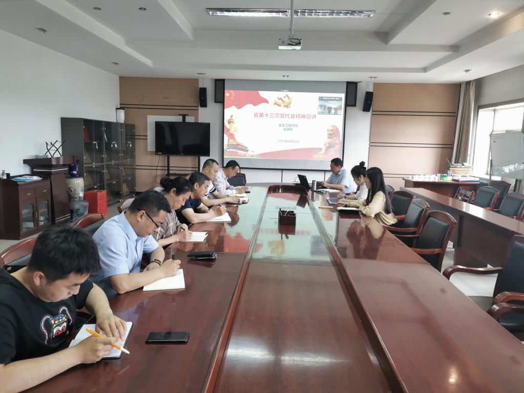 6月16日,安全学院召开了省第十三次党代会精神宣讲会,会议采取线上线下结合形式,学院全体教职工参会,本次宣讲由学院党委书记张炳军主讲。