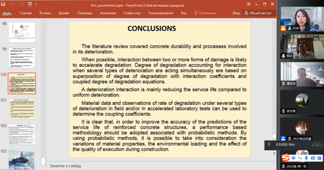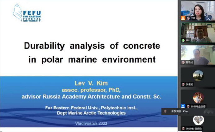6月27日下午,建筑工程学院邀请了俄罗斯建筑与建筑科学研究院(RAACS)顾问,RAACS混凝土和钢筋混凝土破坏科学委员会委员,俄罗斯工程院顾问,国际生态、人类与自然保护科学研究院通讯委员,国际产学研用合作会议框架下中俄导师联合培养研究生项目俄方导师,俄罗斯远东联邦大学Kim Lev教授通过腾讯会议VOOV国际平台做了题为《极地海洋环境下混凝土耐久性分析》的学术报告,并与【官网】师生进行了广泛热烈的学术交流。