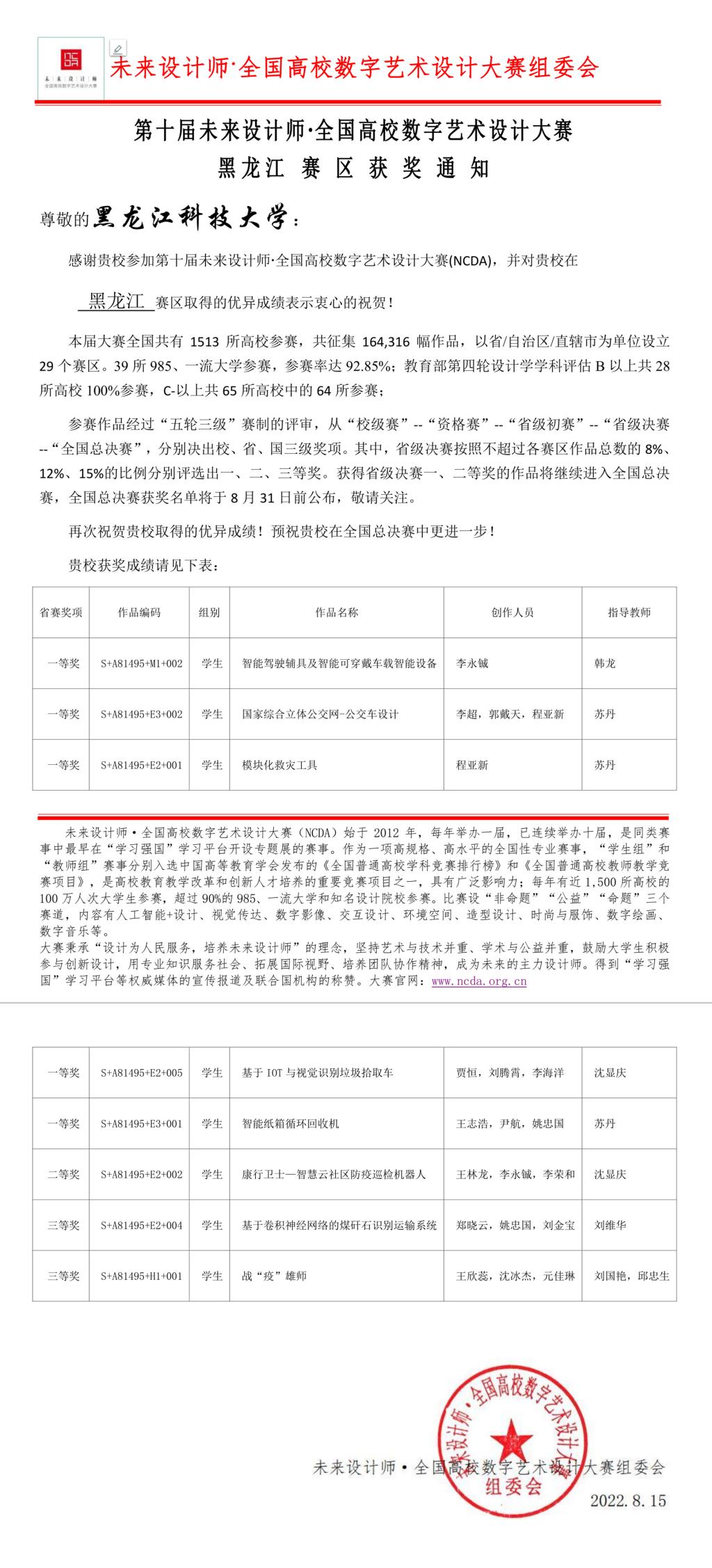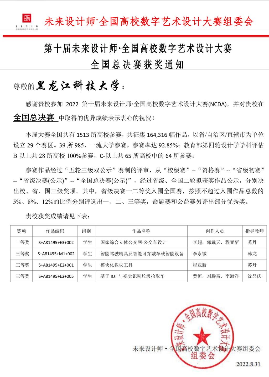 近日,2022年第十届未来设计师·第十届全国高校数字艺术设计大赛全国总决赛落下了帷幕。在总决赛中,【官网】参赛团队获得一等奖1项,三等奖3项的历史最好成绩。