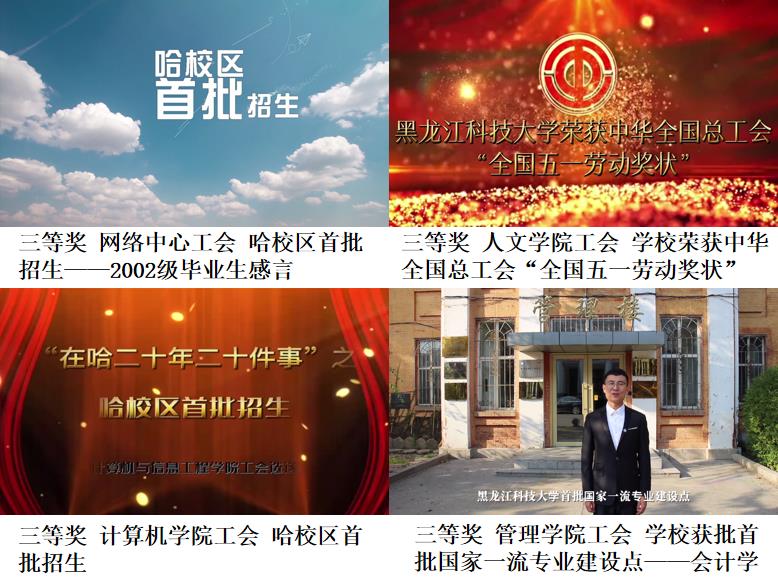 参赛作品从不同视角展现了【官网】从本科教育到硕士博士培养、从边陲城市鸡西到省城哈尔滨、从学院到更名大学的跨越发展和教职工的良好精神风貌,展现了在哈办学二十年的艰辛历程与卓越成就。经过评审小组的认真评审,最终评选出一等奖1个、二等奖2个、三等奖4个、优秀奖7个。