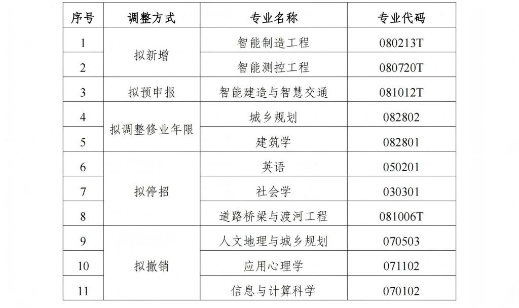 经各专业论证、学院论证、学校论证、学校学术委员会评审、校长办公会审议通过,现将2025年学校本科专业优化调整情况公示如下: