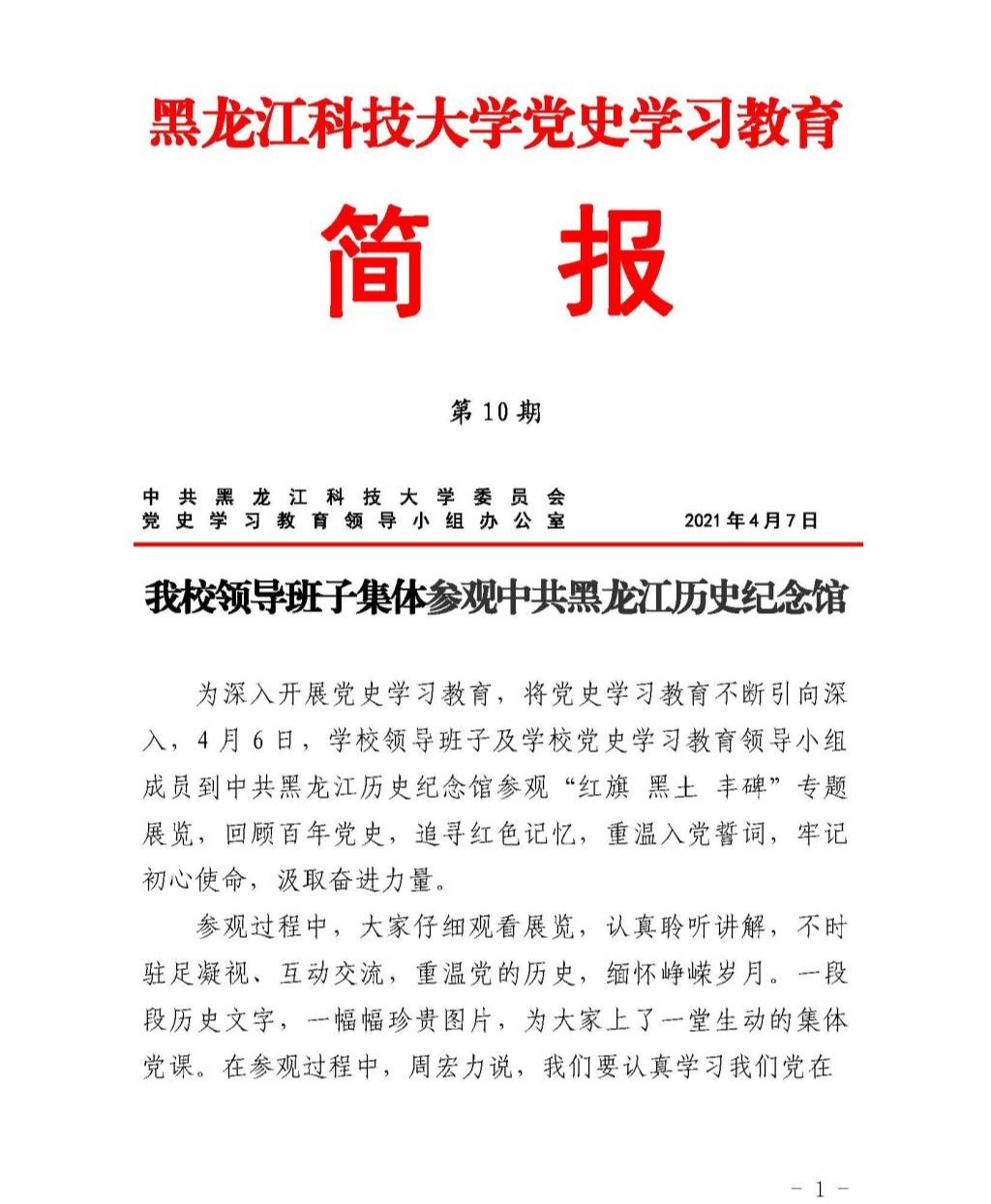 党史学习教育工作简报(第10期)