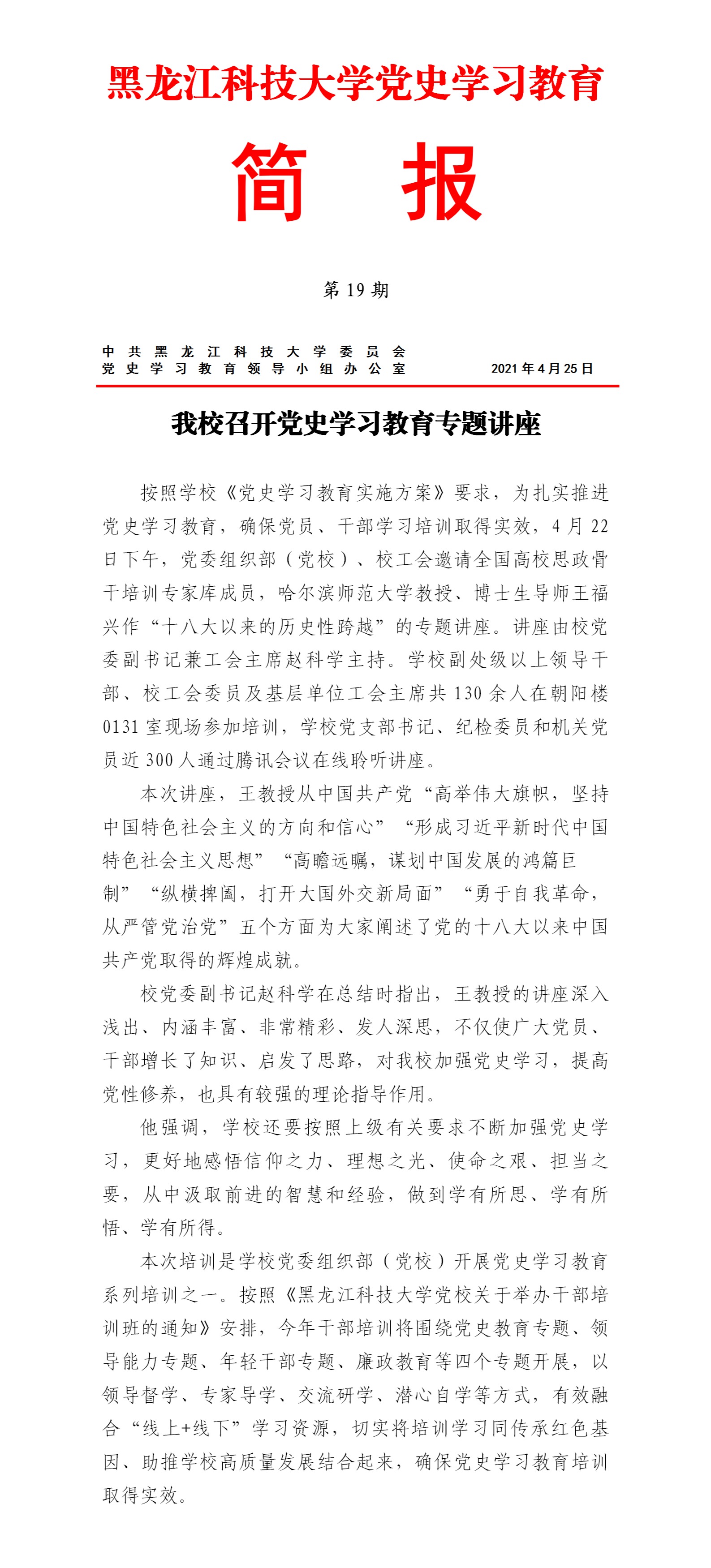 党史学习教育工作简报(第19期)