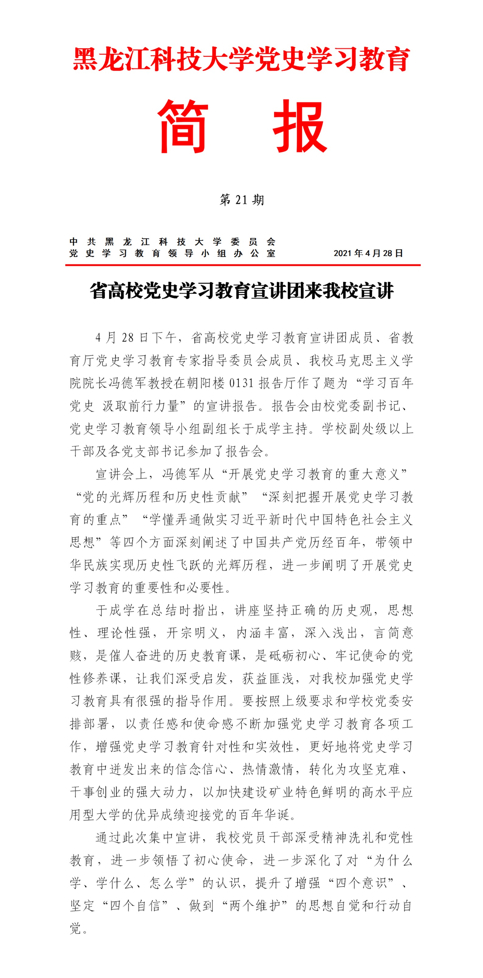 党史学习教育工作简报(第21期)