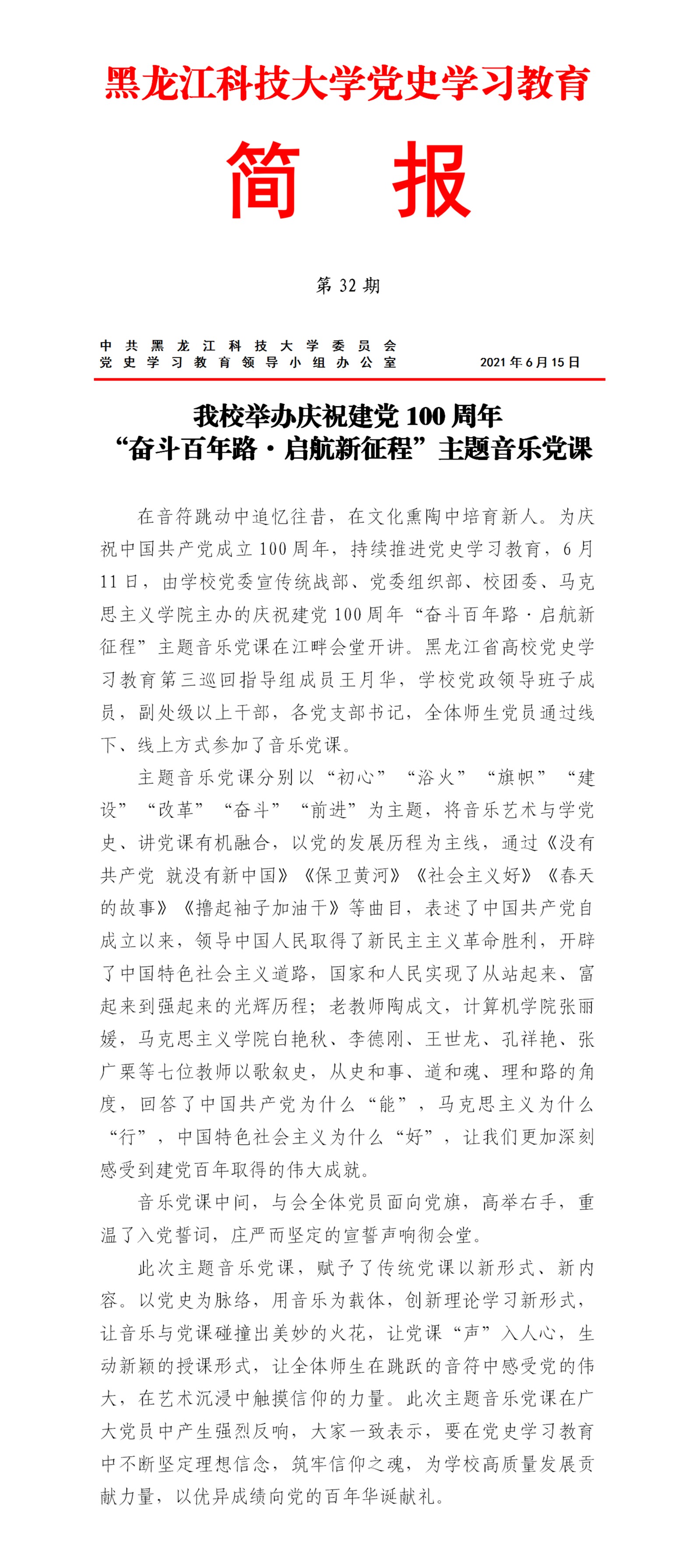 党史学习教育工作简报(第32期)