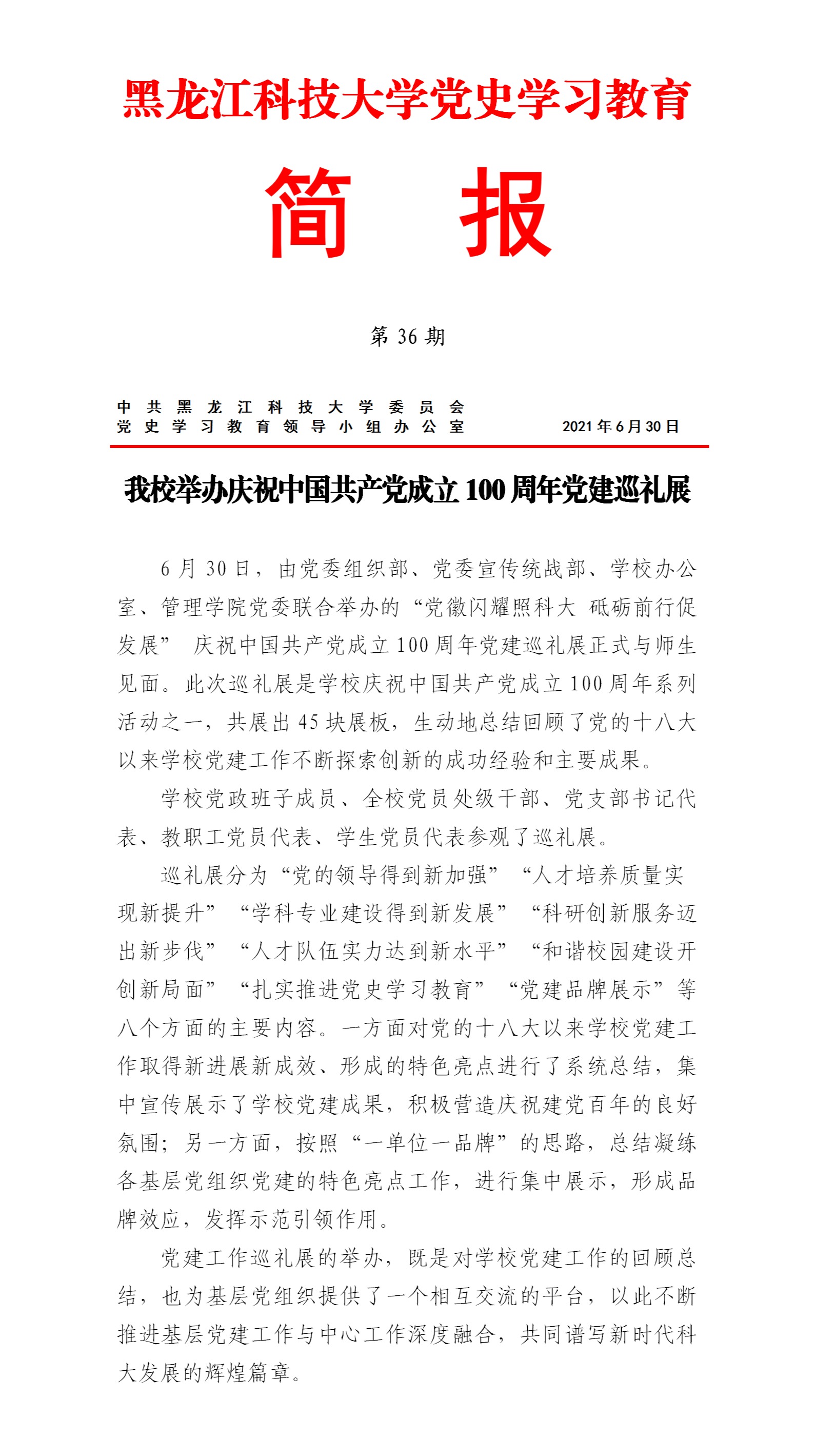 党史学习教育工作简报(第36期)