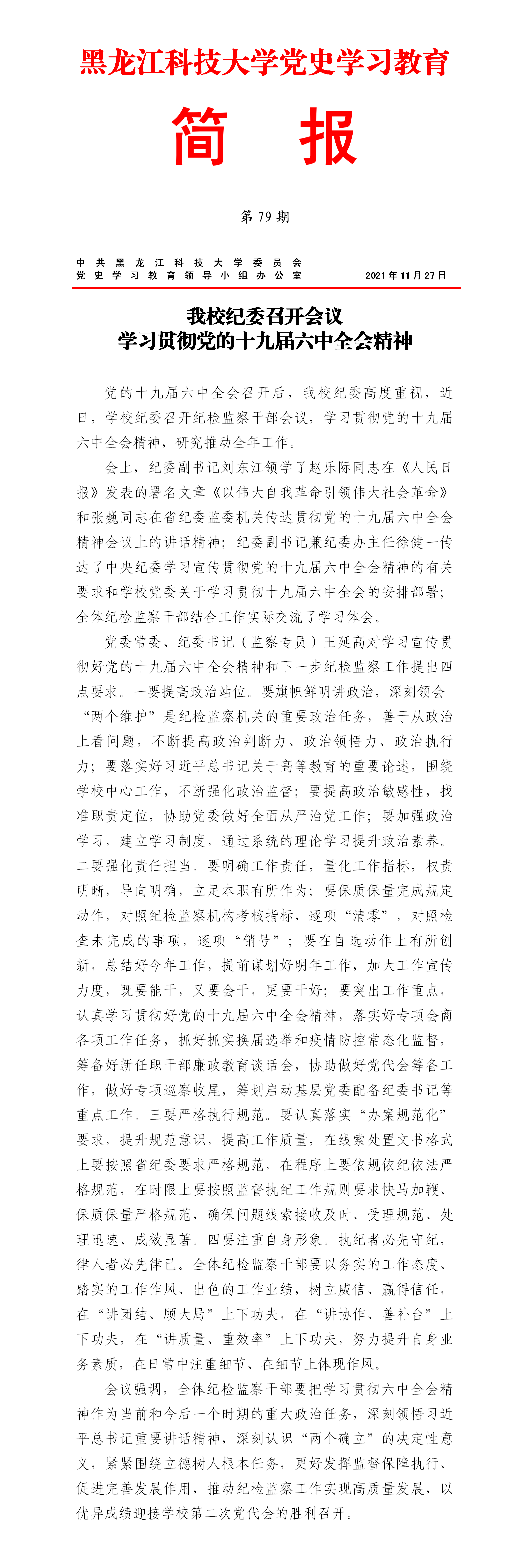 党史学习教育工作简报(第79期)