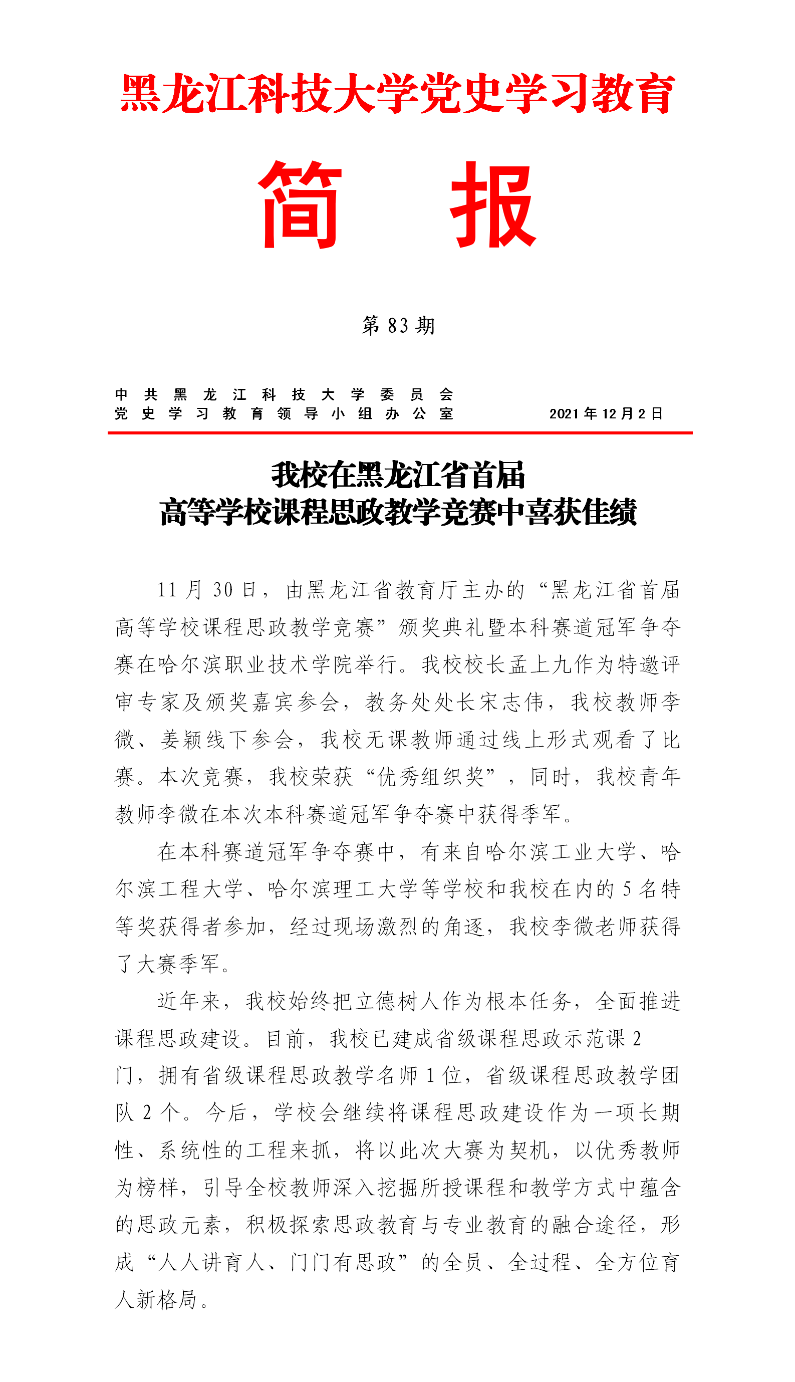 党史学习教育工作简报(第83期)