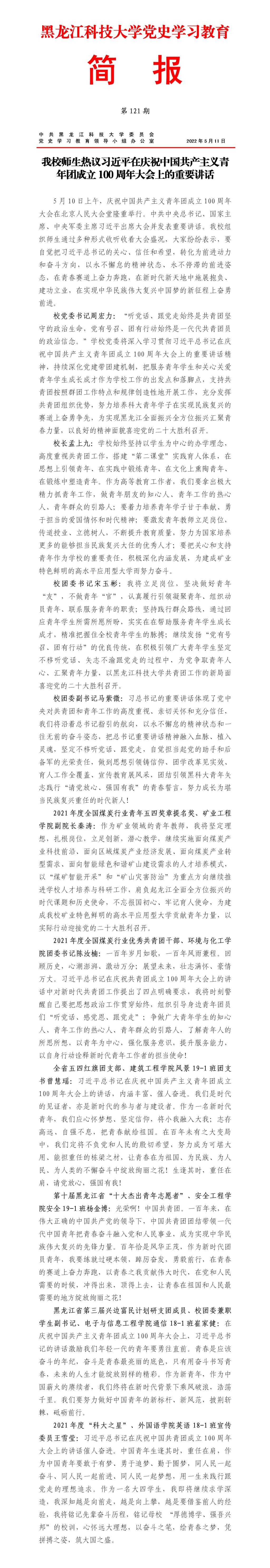 党史学习教育工作简报(第121期)