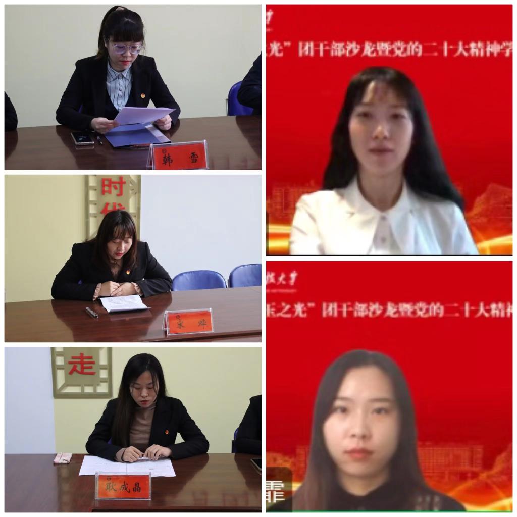 为深入学习宣传贯彻党的二十大精神,团结引领广大青年深刻领悟“两个确立”的决定性意义,增强“四个意识”、 坚定“四个自信”、做到“两个维护”,11月11日,校团委在科厦W203会议室组织举办第六期“墨玉之光”团干部沙龙暨党的二十大精神学习交流会,全体专职团干部、新一届团委委员、校团委学生兼职副书记以线上和线下相结合的方式参加了会议,会议由校团委副书记马紫微主持。