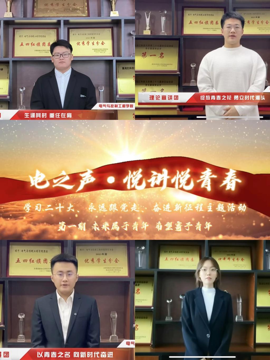 学习就位,坚定理想信念,在逐梦路上踔厉奋发。电气学院94个团支部以“专题组织生活会”为依托,通过领学文件、观看视频、分享心得等方式扎实学习,切实让二十大精神入脑、入心、入行;开展“新时代伟大成就”主题公开示范团活,引导青年学子以崭新的姿态坚定不移听党话,跟党走;成立“电之声·悦讲悦青春”理论宣讲团,以青年学子的视角开展宣讲,讲述二十大精神,传递革命薪火,截止目前已宣讲4期,切实增强了青年学生树立远大理想,勇攀高峰的信心;通过校园实景拍摄“学习二十大精神,争做有为青年”情境微团课,创新学习形式,在学思践悟中坚定理想信念,充分营造了学习二十大精神的浓郁氛围。