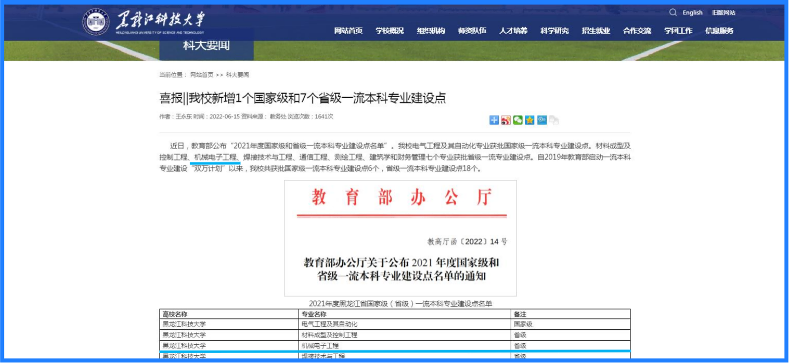 6月8日,教育部办公厅公布了2021年度省级一流本科专业建设点名单,学院机械电子工程专业获批省级一流本科专业建设点。这是继学院机械设计制造及其自动化专业2019年被认定为国家级一流本科专业建设点之后,学院专业建设取得的又一新的突破,是学院专业建设的重要成果。