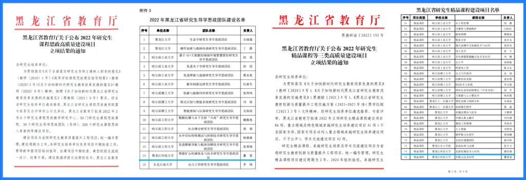 10月18日,董星教授负责的“智能矿山机械装备与技术研究生导学思政团队”获评黑龙江省研究生导学思政团队(导师)建设项目。12月2日,唐庆菊教授负责的《无损检测技术与应用》课程获评黑龙江省研究生精品课程建设项目。此外,12月16日,省教育厅发布公示,刘训涛教授负责的《技术创新方法与TRIZ理论》课程,入选黑龙江省高等学校课程思政示范培育项目。