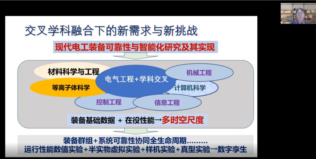 刘晓明教授以《交叉学科融合创新背景下的现代电工装备可靠性与智能化研究及其实现》为题作学术报告,介绍了在交叉学科融合背景下产生了许多新需求与新挑战,结合现代电工装备可靠性与智能化研究及其实现的背景,阐述了当代科研人需要具备哪些科学研究思维能力,指出了分析性思维、设计思维、批判思维、网络思维对科学研究的重要性,强调了电气交叉学科、电气工程+的特点。