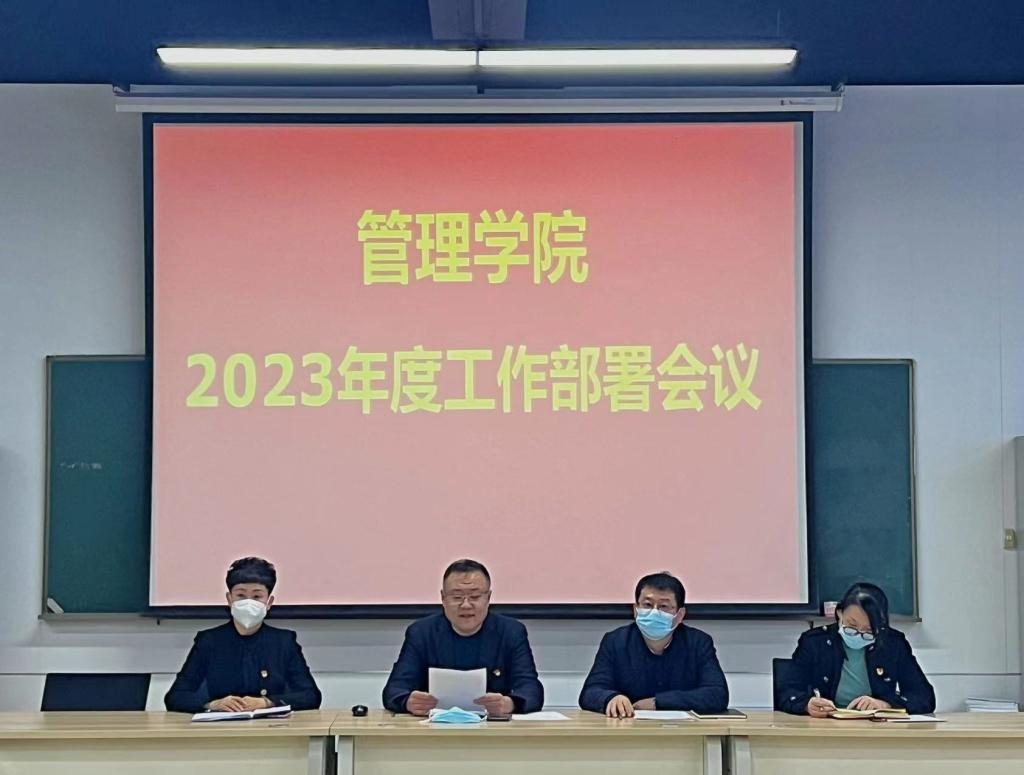 浩荡春风今又起,砥砺奋进正当时。2月24日,管理学院在一楼ERP教室召开2023年度工作部署暨新学期开学启动会,学院领导班子成员和全体教职工参加会议。会议由学院党委书记何景洋主持。