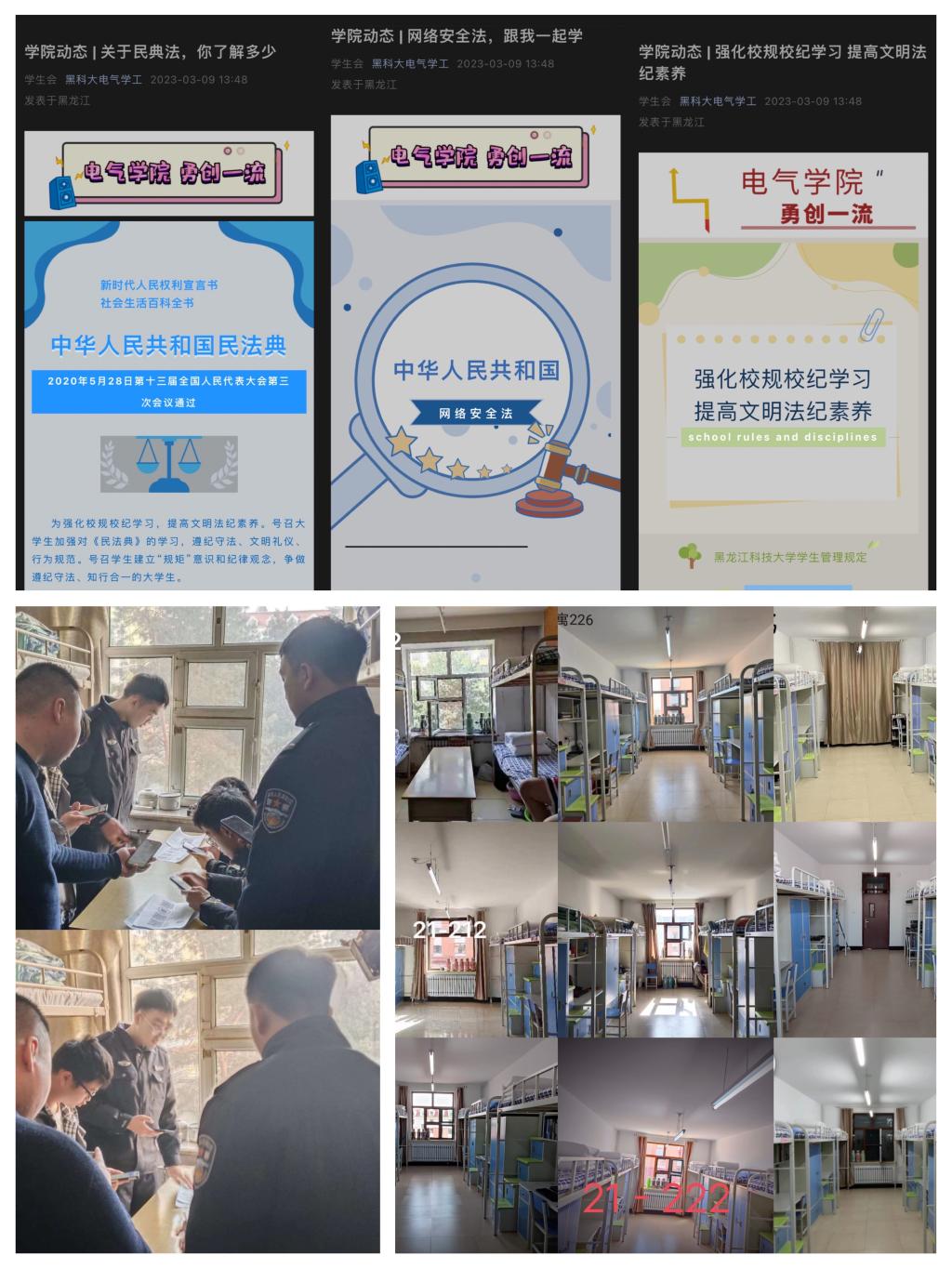 严明法规校纪“警戒线”。电气学院开展民法典普及宣传,增强法律学习;开展网络安全法宣传教育,强化法律意识;开展强化校规校纪学习主题班会,针对《OD在线学生管理规定》进行学习,增强学生规矩意识和纪律观念;邀请松浦派出所民警共同开展反诈宣传,加强学生自我保护意识。