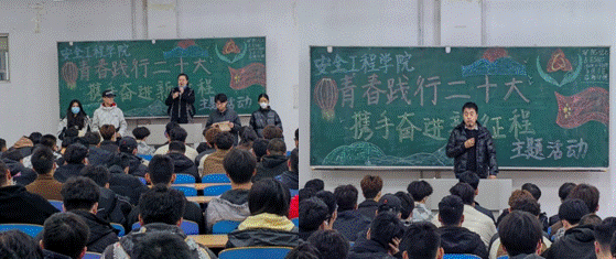 新学期伊始,为进一步强化大学生思想政治教育工作,使学生以良好的精神风貌投入新学期的学习、生活和工作中。安全工程学院以习近平新时代中国特色社会主义思想为指导,以疫情防控教育和理想信念教育为重点,教育引导学生深入学习贯彻党的二十大精神,利用学生返校第一周的时间,有重点、有针对性的开展了首周教育系列活动。