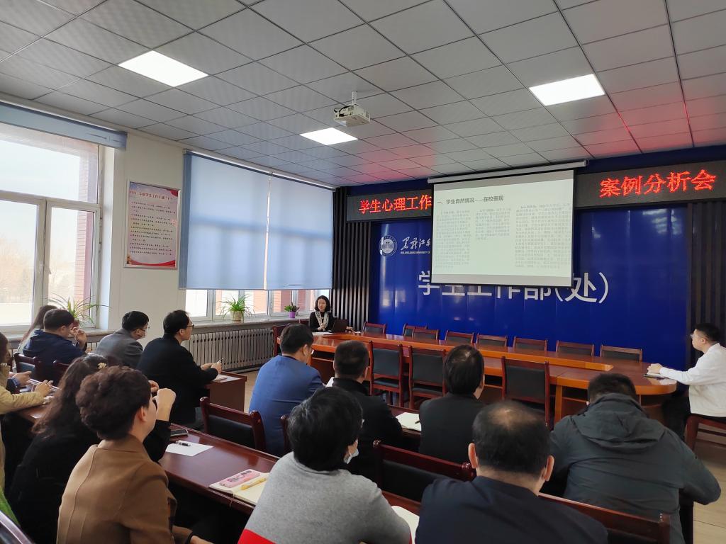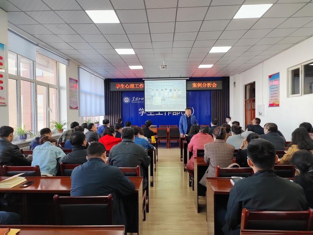 为进一步提高学工队伍心理危机预防和干预能力,增强心理工作的针对性和实效性,提升学生心理危机的识别鉴别、预防干预工作技能,3月30日上午,学工部(处)组织召开【官网】学生心理工作案例分析会,深入剖析查找不足,群策群力提升能力。本次会议由学工部(处)副部(处)长杨凤娟主讲。学工部(处)领导班子成员、各学院党委副书记、副处级辅导员、学工办主任、心理中心专职教师和全体心理辅导员参加了会议。