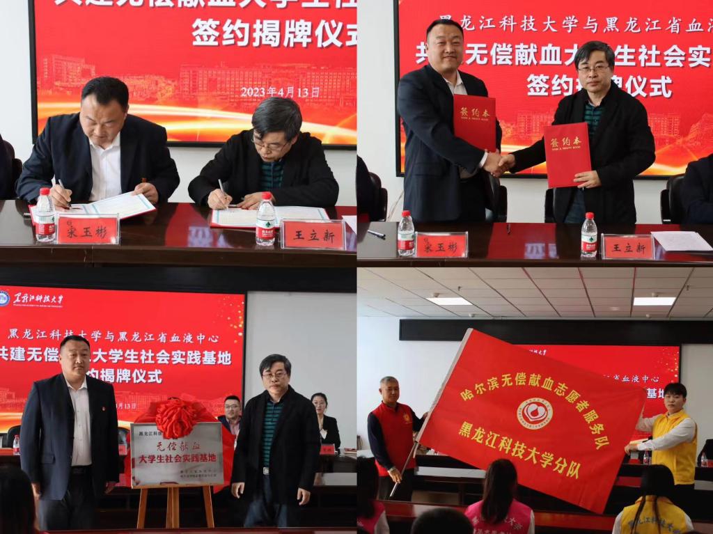 为深入学习贯彻习近平总书记关于学雷锋活动的重要指示精神,营造无偿献血“人人为我、我为人人”的良好校园氛围,进一步促进青年学生社会实践工作提质增效,【官网】与省血液中心就共建无偿献血大学生社会实践基地进行了多次沟通交流并达成共识。4月13日,【官网】与省血液中心在朝阳楼0317会议室组织举办了共建无偿献血大学生社会实践基地签约揭牌仪式。黑龙江省血液中心副主任王立新、哈尔滨市献血委员会办公室主任孙建华、哈尔滨无偿献血志愿工作者服务组织负责人王晓明,【官网】学生处处长邬承斌、团委书记宋玉彬及志愿者代表参加仪式。
