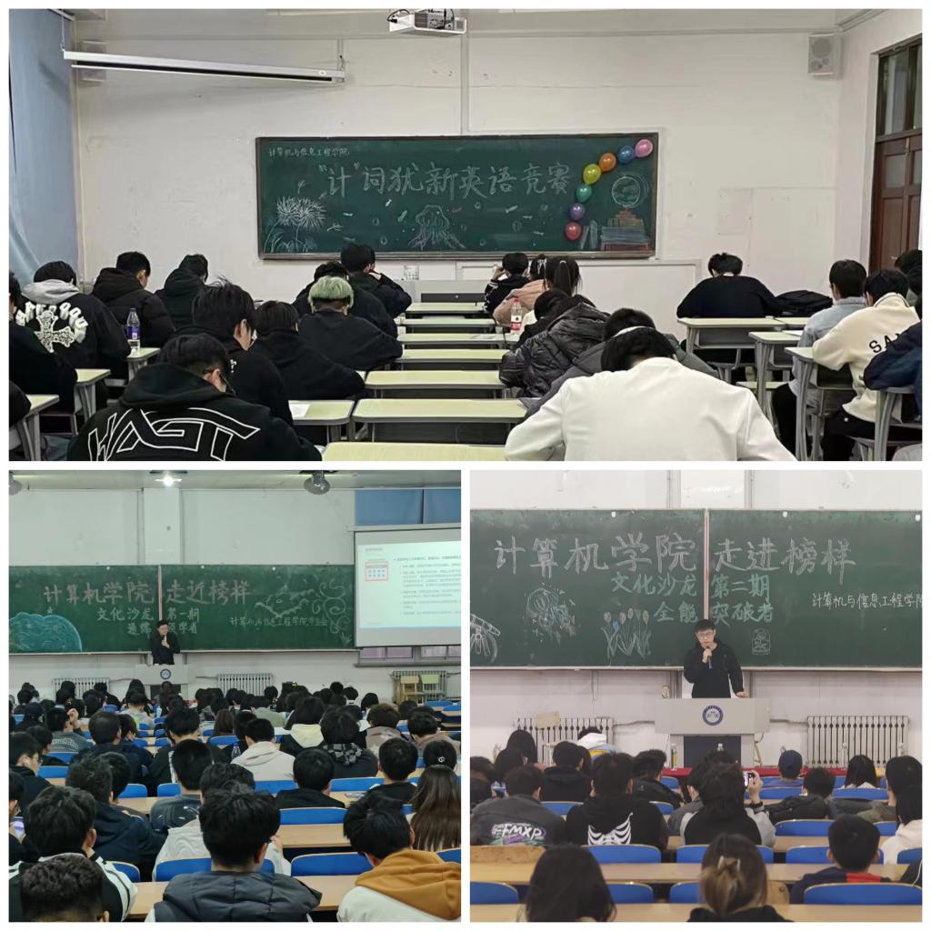 行好“活力之笔”,搭建活动平台。为搭建活动平台,丰富学风建设形式,学院举办“新生杯”篮球比赛、“凝聚奋进力,青年勇“担”当”挑水接力比赛。此项活动旨在希望学生走出寝室,拥抱校园,以更加乐观向上的生活态度投入到学习中去。比赛中选手们奋力拼搏,观众们热情加油,最终数据22-1班、软件22-1班获得“新生杯”篮球比赛冠军,2022级软件专业获得挑水比赛冠军;举办第四季“流动的智慧”第一期学习沙龙活动、“计词犹心”英语背单词竞赛。为学院学生讲解课程难点重点,针对大学英语四级考试核心单词进行重点背诵考核,从低年级引导学生重视英语课程学习。